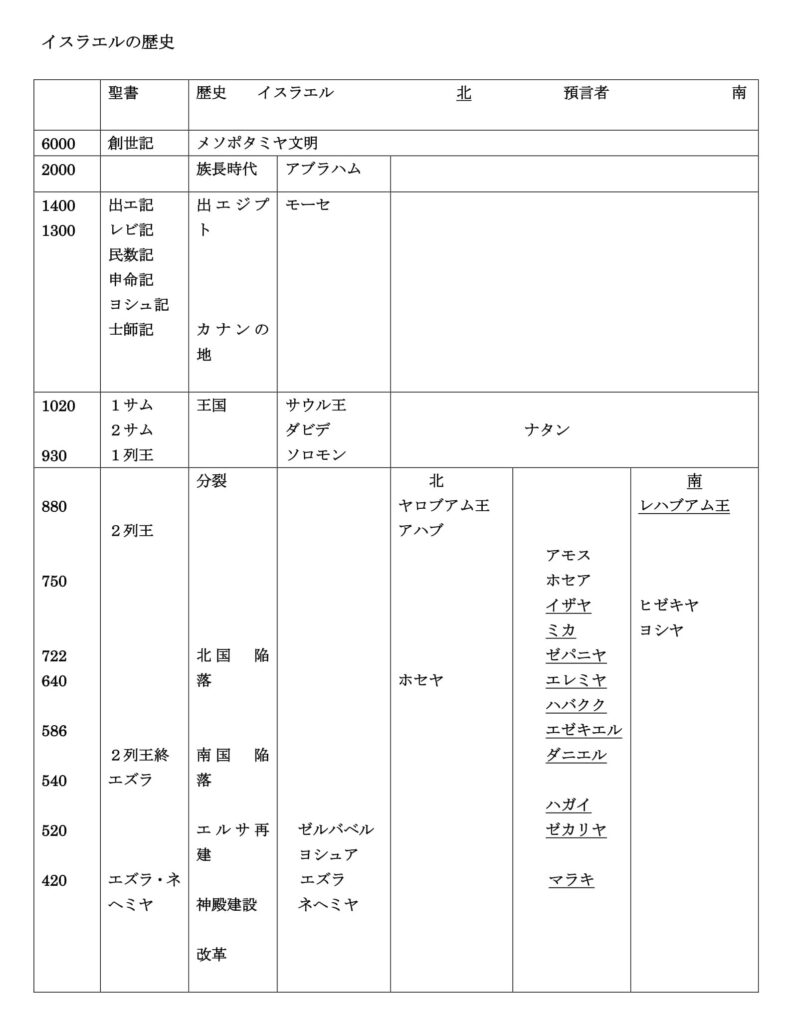 - 2列王記ー南と北の王国の歴史が記されている。前721年に北の王国、サマリアがアッシリア王国に占領され壊滅する。その後、バビロン王国がアッシリア王国に代わって、中東を支配する。前586年にバビロン王国がエルサレムを攻めのぼり、ユダの南の王国は壊滅する。エルサレム神殿も破壊され、ユダヤ人はバビロンに移住させられバビロンの捕囚の民になる。
