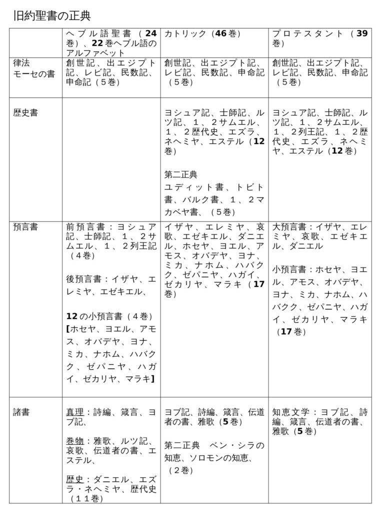 旧約聖書の成り立ちと正典について解説しましたが、カトリック正典とプロテスタント正典に違いがあることも説明しました。参考にしていただければ幸いです。